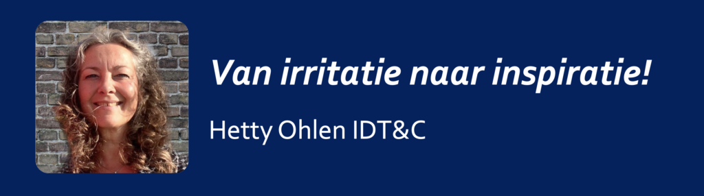 Als coach of verbinder leer ik mensen om als probleemeigenaar op te treden bij de knelpunten die zij in hun werk ervaren. Ik maak hen bewust van hun eigen potentie om in samenwerking actief te denken vanuit mogelijkheden. Van irritatie naar inspiratie. Ik stimuleer medewerkers om vanuit eigen verantwoordelijkheid te handelen en hun taken uit te voeren als zelfstandige professionals. Door mijn brede praktijkervaring ben ik een heldere sparringpartner / trainer on the job die (nieuwe) medewerkers en teams naar taakvolwassenheid en zelfsturing leidt.